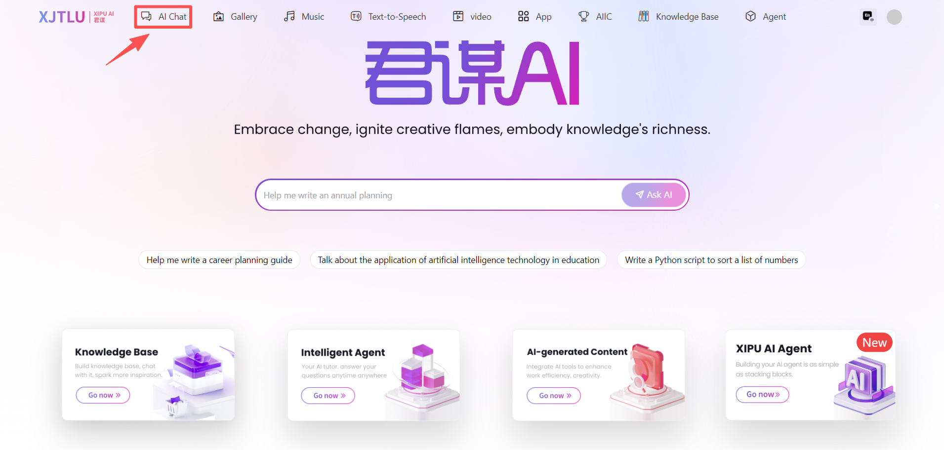 Visit XIPU AI via https://xipuai.xjtlu.edu.cn/v3/index and click the “AI Chat” button to launch the chat interface.