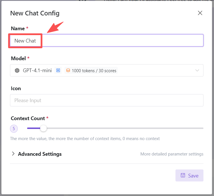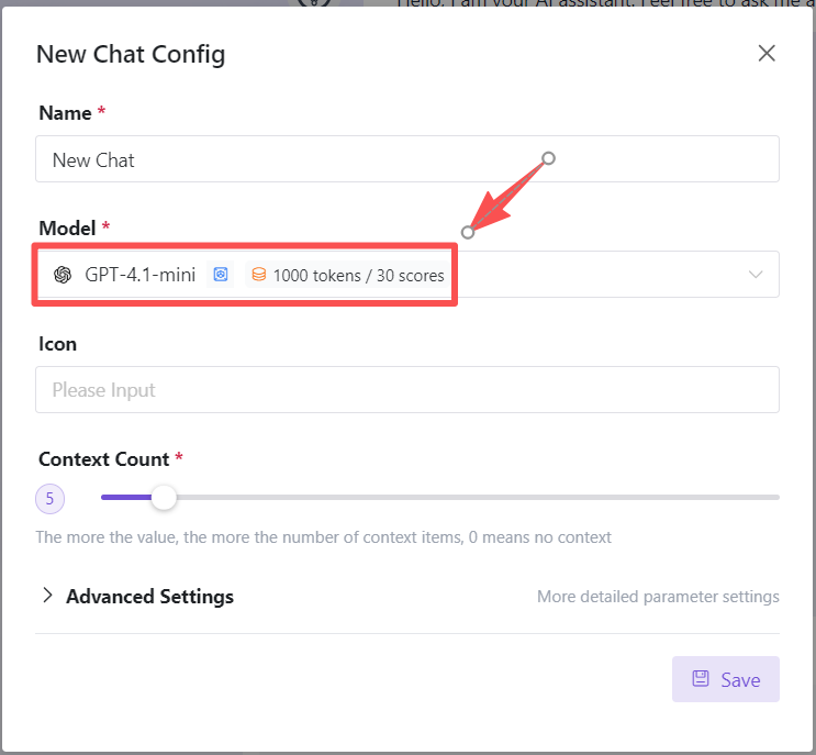 Default: GPT-4.1-mini. Switch to other AI models via the dropdown for different response styles or capabilities.